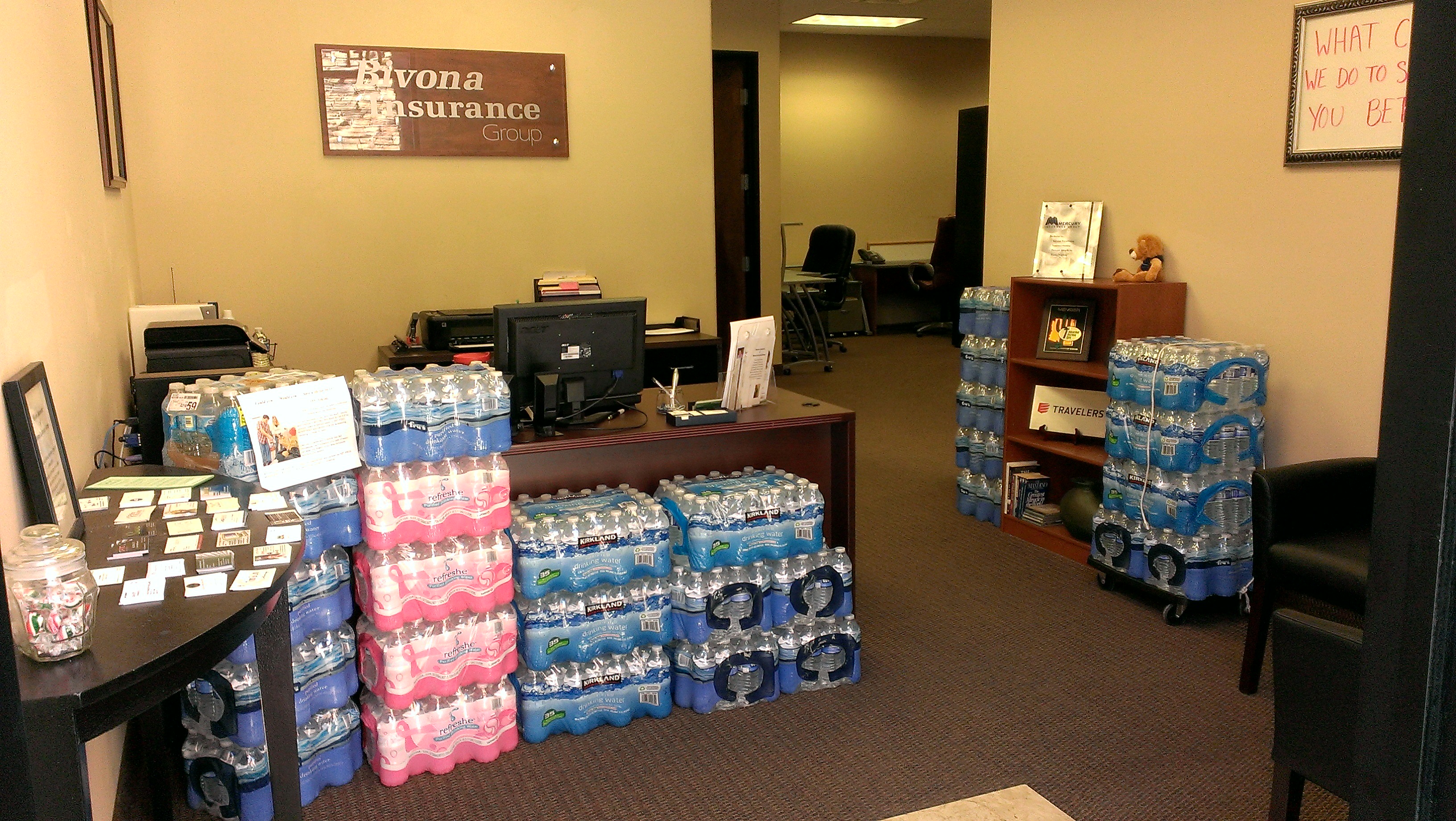 | BIVONA INSURANCE GROUP purchases cases of water, and clients, employees and friends also contribute cases of water. These are then taken to different ministries that provide bottled water to the homeless and street people who would otherwise perish from dehydration in our extreme heat. |
