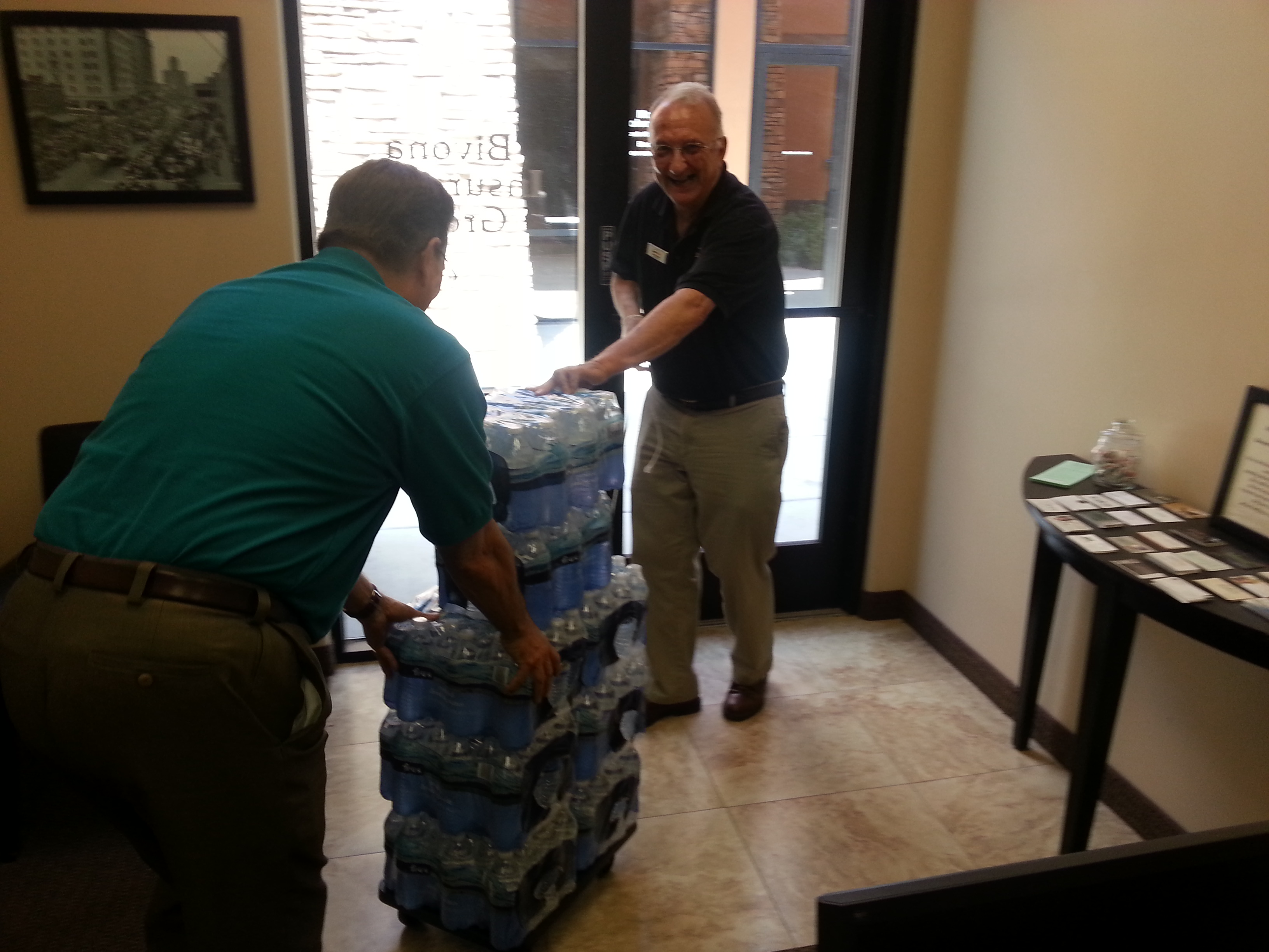 | BIVONA INSURANCE GROUP purchases cases of water, and clients, employees and friends also contribute cases of water. These are then taken to different ministries that provide bottled water to the homeless and street people who would otherwise perish from dehydration in our extreme heat. |